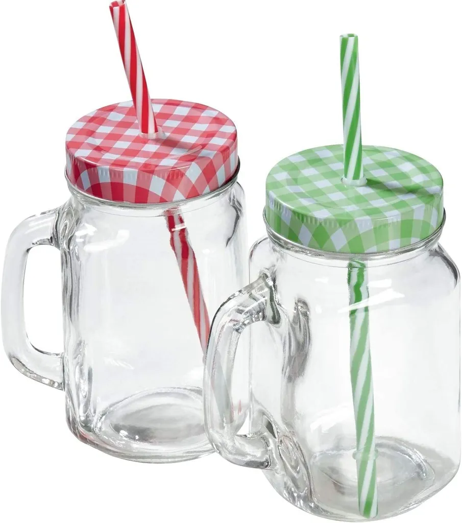 2 Gläser mit Deckel und vier Trinkhalmen