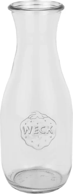 WECK Saftflasche + Glasdeckel, 1/2 Liter Glaskaraffe inkl. Abdeckung, hochwertiges Einkochglas, Rundrandglas 60