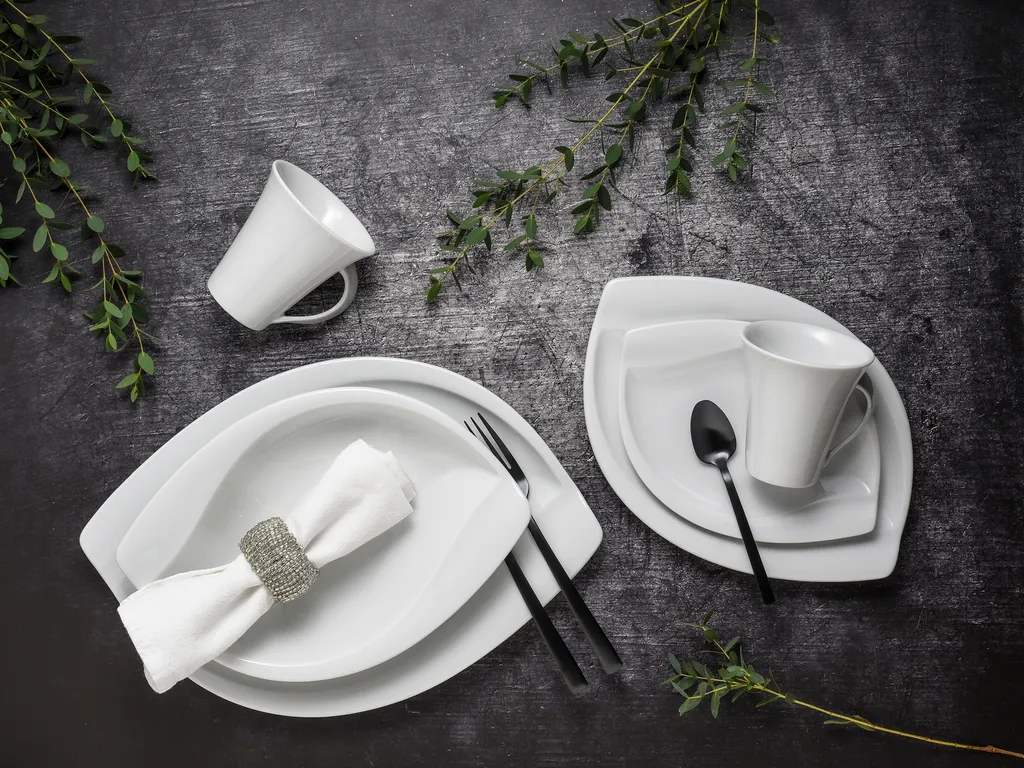 Die wunderschöne, weiche Blattform mit Ihren extra großen Tellern und Tassen in außergewöhnlicher Form sind ein Hingucker. Das Set ist Spülmaschinen- und Mikrowellengeeignet.