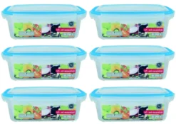 - Transparente Dosen mit Clickverschluss und blauer Dichtung im Deckel