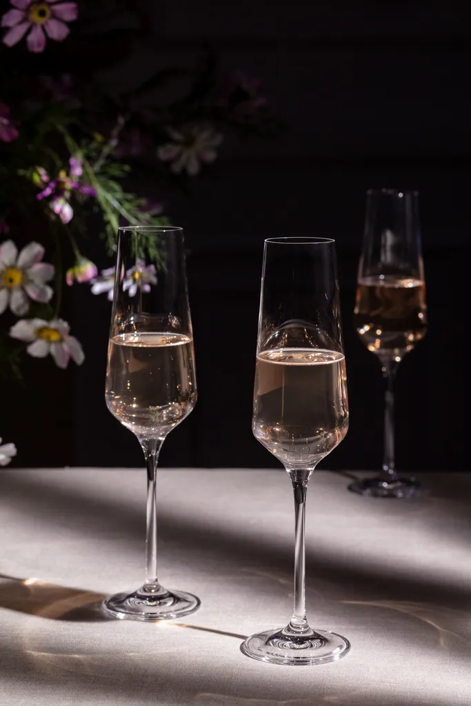 ELEGANTE FORM – Elegante Form wird echte Kenner begeistern. Der hohe Stiel ist mit einem schlanken Kelch gekrönt, so dass die Blasen das Glas langsam verlassen und den vollen Champagner-Duft enthüllen.