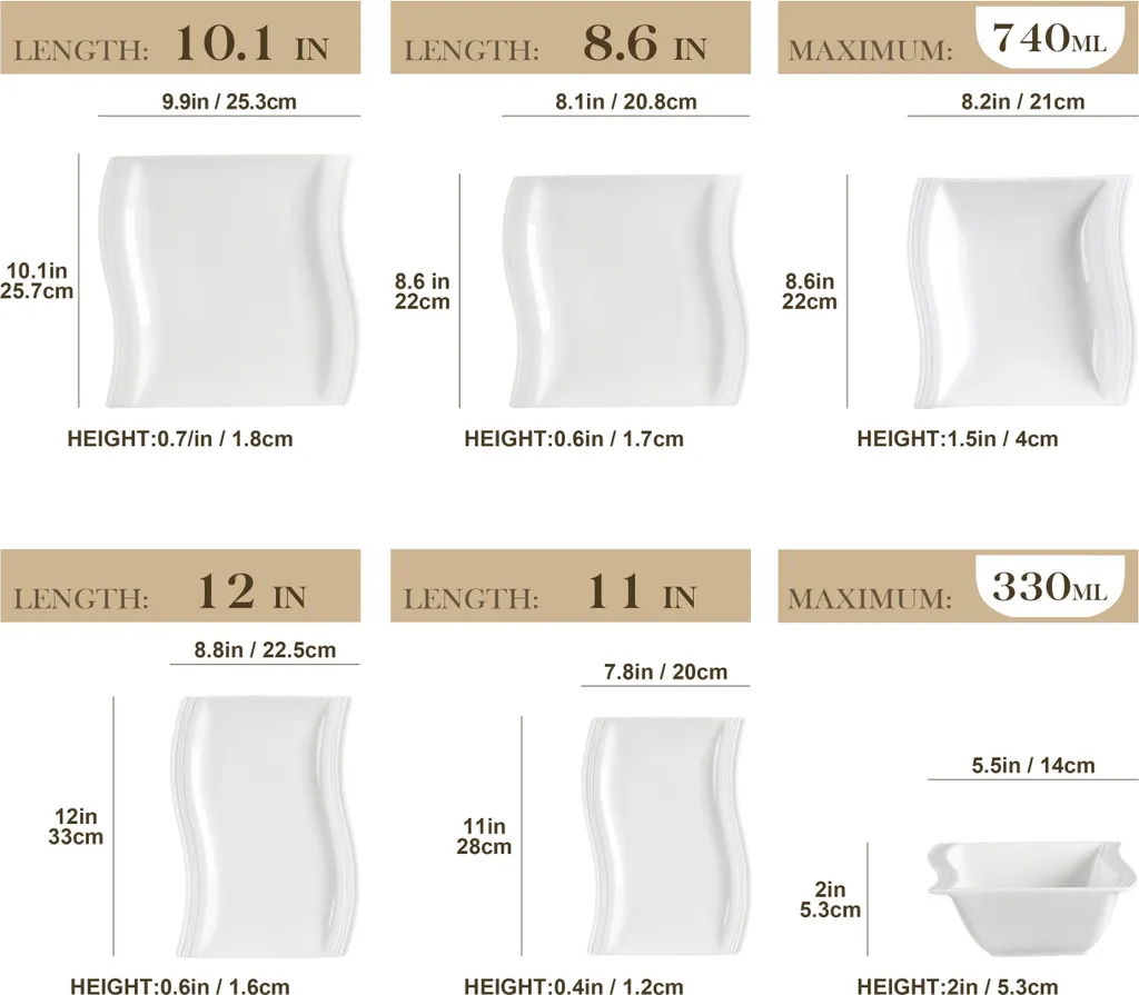 - Aus robustem und langlebigem Porzellan ermöglicht einen langjährigen Einsatz im täglichen Gebrauch. Mit der schönen Linien, handgefertiges Design, der umweltfreundlichen Material bietet dieser Kombiservice zum Hingucker auf Ihrem Tisch. Perfekt für den täglichen Gebrauch und bietet Ihnen Genussmomente auf die Küche!