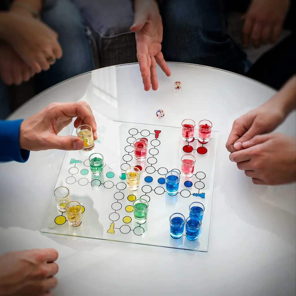Das Würfel-Trinkspiel wird der Hit auf jeder Party und spielt sich nach klassischem Vorbild. Drinking Ludo bleibt dabei dem beliebten Spielprinzip treu, nur das hier statt kleinen Figuren Shotgläser bewegt werden. Diese sind zu leeren, wenn man „herausgeschmissen“ wird.
