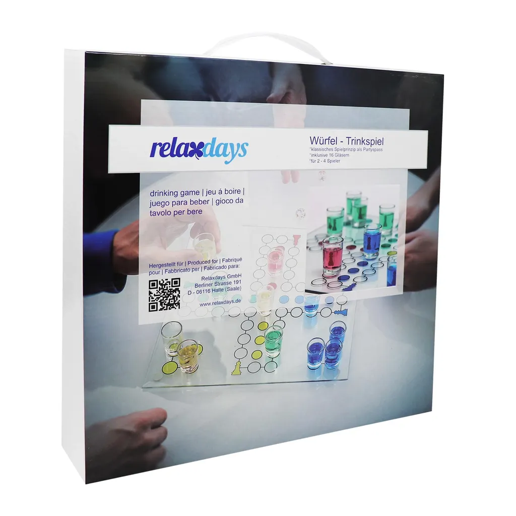 Drinking Ludo – das originelle Trinkspiel zum Würfeln für den extra Spaß auf jeder Party, dem Männerabend, der Ladies Night und allen anderen feucht-fröhlichen Anlässen. Eine besondere Geschenkidee für Erwachsene. Einfach auspacken, Figuren aufstellen und die Party kann beginnen.