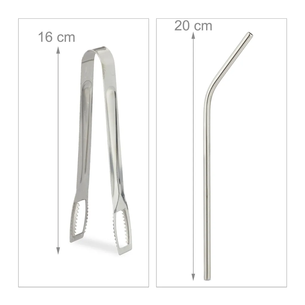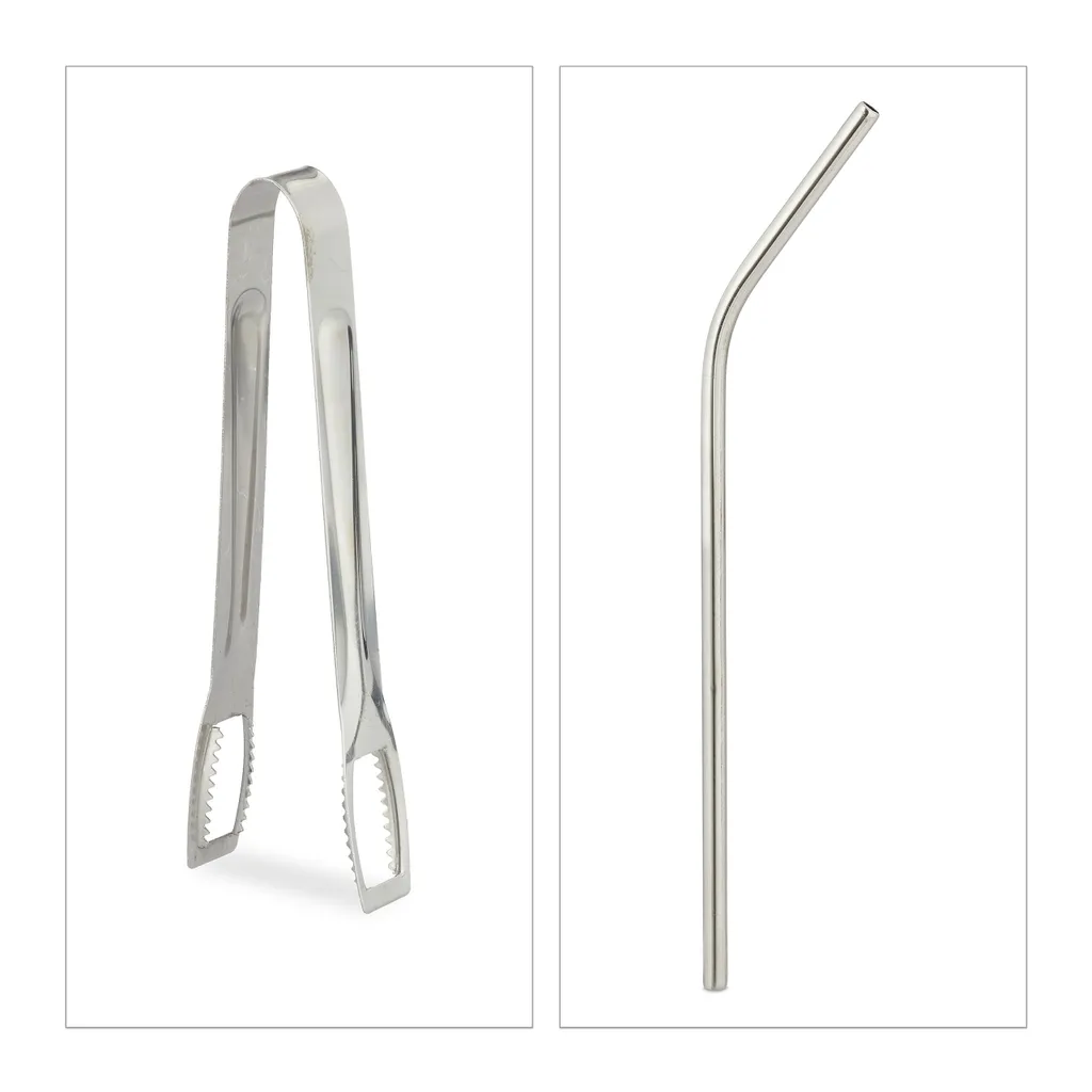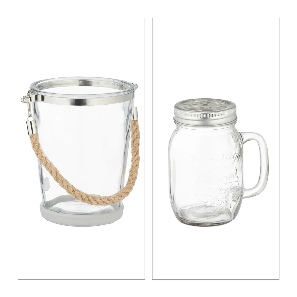 Servieren Sie auf der nächsten Sommerparty stilvoll Getränke mit dem Set aus Longdrinkgläsern und Eiskübel. Jedes der 4 Limonadengläser erinnert an ein Marmeladenglas und verfügt über einen kunstvoll gestalteten Schraubdeckel samt Strohhalm. Passend zur Kaltgetränk hält der Glaseimer Eiswürfel bereit, welche mithilfe der Zange einfach portioniert werden können. Das Erfrischungsensemble überzeugt mit charmanten Details wie der Gravur auf den Smoothie Gläsern und dem Seil als Henkel am Eiskübel.
