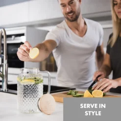 Seit der Gründung stehen für die Firma Remember Farben und Formen im Vordergrund. Elegante Glaskaraffe, die dem täglich gedeckten Tisch eine stilvolle Note verleiht. Da das Gefäß aus Borosilikatglas gefertigt wird, ist es fein, leicht und gleichzeitig sehr stabil und temperaturwechselbeständig. Extrem kalte oder heiße Temperaturen können der Karaffe nichts anhaben. Mit Getränken gefüllt, ändert sich die Farbgebung und ein charmantes Farbenspiel entsteht.