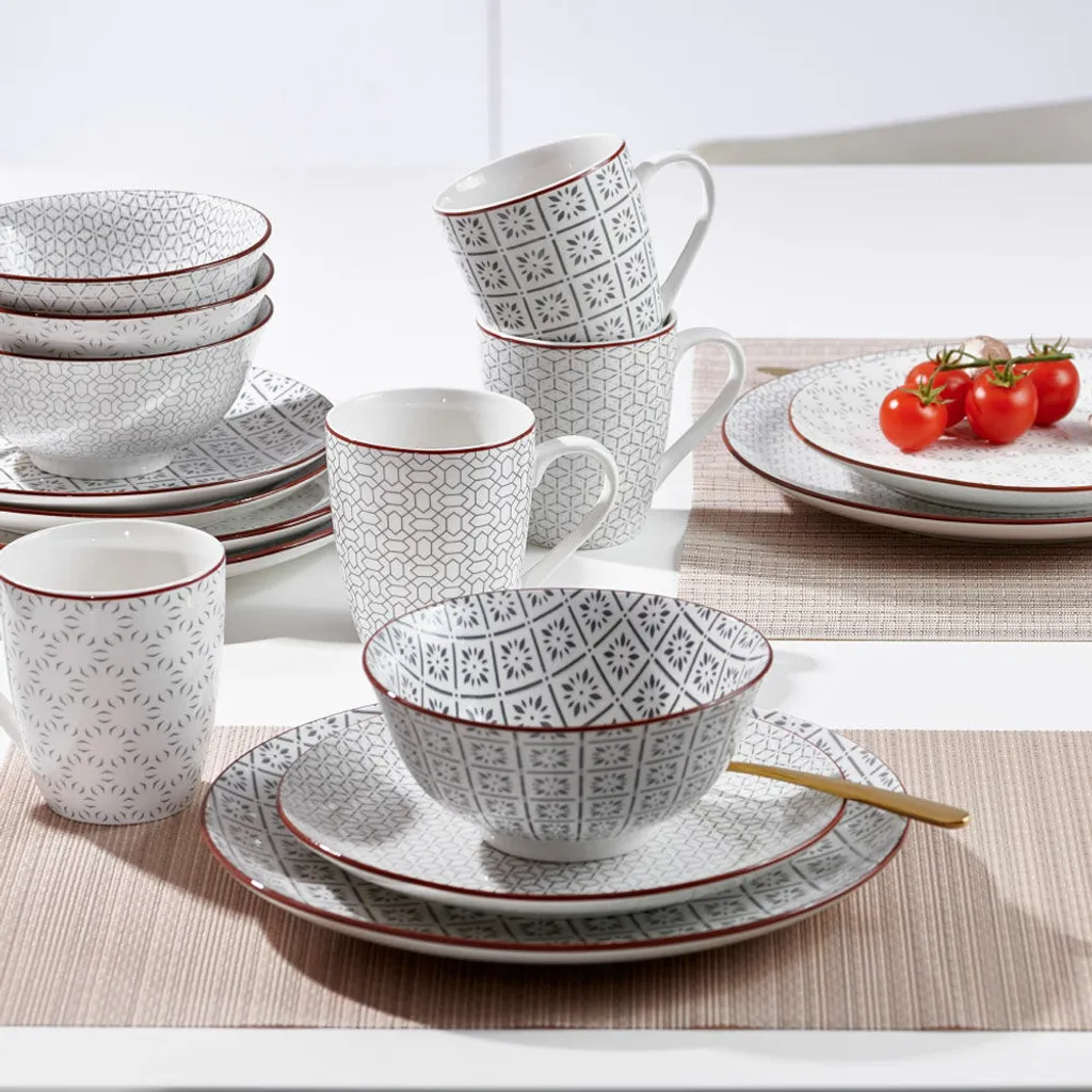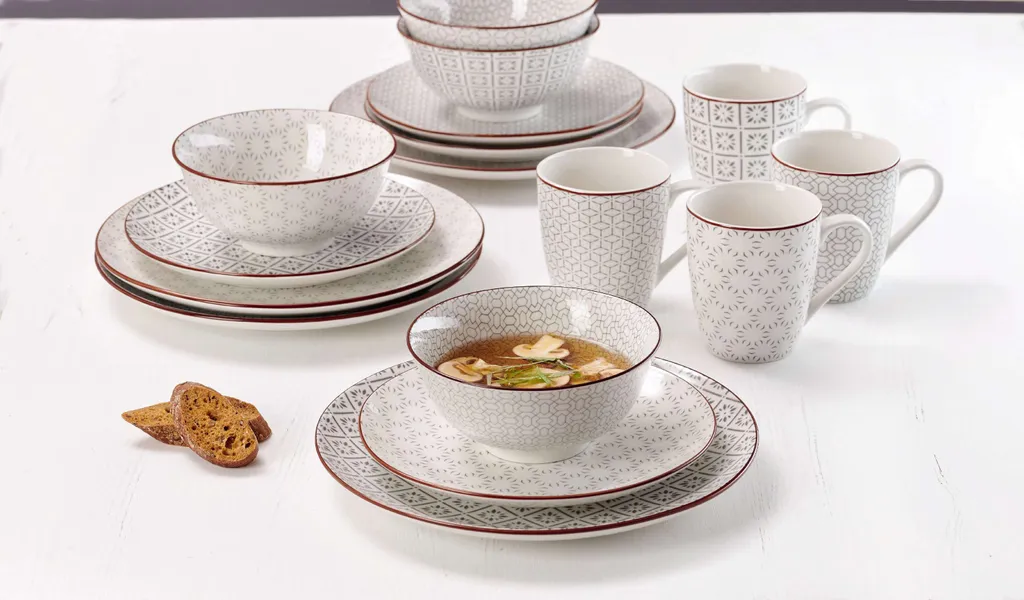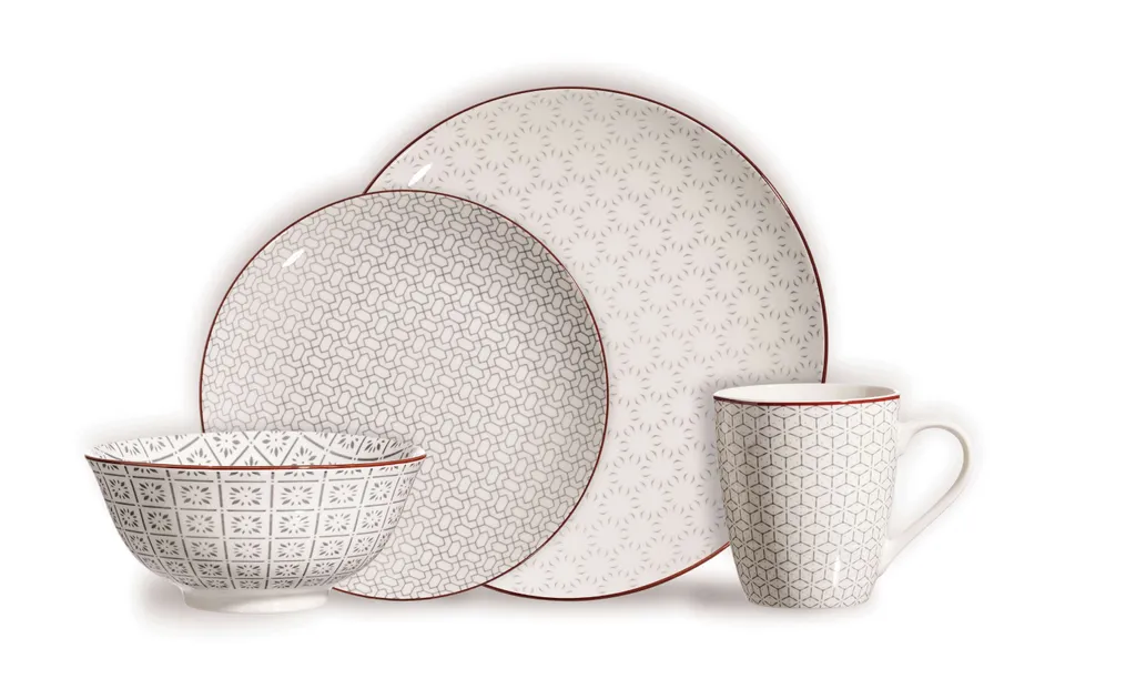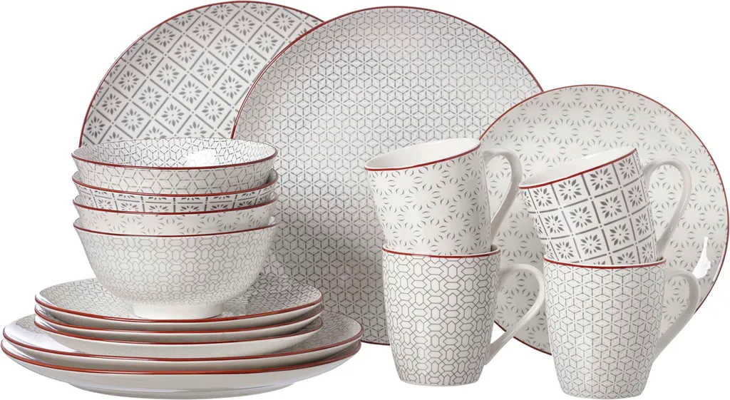 Voll im Trend liegen Sie mit dem Ritzenhoff & Breker Kombiservice 16-tlg. ‚SIEM‘ für den kleinen Haushalt. Zur schlichten Formensprache des Steinzeugs gesellen sich vier verschiedeneNachbildunge in Zartgrau auf Weiß. Ein dezenter terrakottafarbener Rand sorgt für ein stimmiges Gesamtbild.