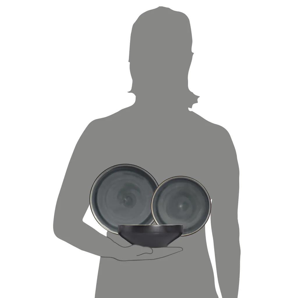 Außen schwarz, Innen grau, das Service Helsinki überzeugt mit seinen dunklen Farben, welche einen hochwertigen Kontrast zwischen Teller und Speisen erzeugen, wodurch Ihre Gerichte deutlich in den Vordergrund treten und perfekt präsentiert werden.
